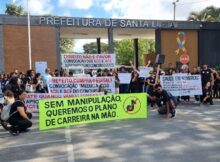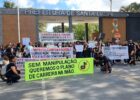 Agentes Comunitários de Saúde (ACS) e Agentes Comunitários de Endemias (ACE), realizam manifestação, em frente à Prefeitura de Santa Luzia, na manhã desta quarta-feira (15). Com faixas e