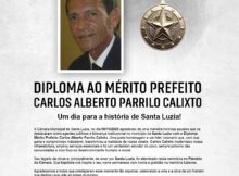 DIPLOMA AO MÉRITO PREFEITO CARLOS ALBERTO PARRILO CALIXTO Um dia para a história de Santa Luzia! A Câmara Municipal de Santa Luzia, no dia 08 de outubro,