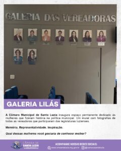 A Câmara Municipal de Santa Luzia inaugurou, recentemente, um espaço permanente, dedicado às mulheres que fizeram história na política municipal. Um mural com fotografias de todas as vereadores que participaram das legislaturas luzienses.