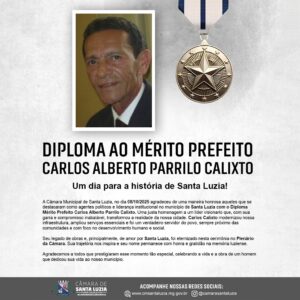 A Câmara Municipal de Santa Luzia, no dia 08 de outubro, agradeceu, de uma maneira honrosa, aqueles que se destacaram e se destacam como agentes políticos e lideranças no município com o diploma Mérito Prefeito Carlos Alberto Parrilo Calixto. Uma justa homenagem a um líder visionário que, com sua garra e compromisso inabalável, transformou a realidade da nossa cidade.