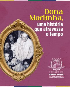Maria do Carmo Moreira, nascida em Santa Luzia em 25 de março de 1898, Mariinha Moreira foi a caçula dos sete filhos de João Augusto Moreira e Elisa Brasilina Moreira (sobrinha neta da Baronesa de Santa Luzia). De família tradicional das mais abastadas da imperial Santa Luzia, morou em casa grande situada à Rua Direita, de fachada eclética, paredes internas forradas de papel adamascado, tabuado encerado, forros em madeira trabalhada, biblioteca farta, inúmeros quartos, sala de jantar com mesa enorme para vários comensais e cristaleiras repletas de cristais e porcelanas importadas. Nesse ambiente de luxo para aépoca,veio ao mundo a frágil criança, de saúde precária,sempre sob os cuidados da mãe. Nunca frequentou escola formal, sendo a sua educação ministrada em casa por professores particulares.A facilidade para aprender a levou a amar a leitura e, ainda adolescente falava e escrevia o francês,cujos clássicos lia no original. Em 1926, junto com amigas, fundou as “Damas de Caridade de São Vicente de Paula”, que dirigiu por mais de 50 anos, dando assistência espiritual e material aos pobres, lavando e cuidando pessoalmente quando se achavam doentes. Em 20 de junho de 1941, demonstrando novamente seu desprendimento e amor ao próximo, fundou a “Sociedade de Proteção à Infância”, hoje “Associação de Proteção, Infância e Assistência Social de Santa Luzia”, mantenedora do “Instituto São Jerônimo”, internato para meninas órfãs e carentes da cidade e vizinhanças. À época, sua proposta de proteção à infância carente foi pioneira, pois era mais ampla do que simplesmente alimentar e alfabetizar, oferecendo um padrão de vida de acordo com a dignidade humana. Nessa instituição, que dirigiu por mais de quatro décadas, Mariinha Moreira colocou sua vida, suas rendas, suas alegrias, sua realização pessoal. Sustentou sua obra assistencial com ajuda dos amigos e com a realização de barraquinhas, teatros, rifas, etc. Sempre rejeitou ajuda oficial, pois nunca aceitou interferência nos modos avançados de dirigir a entidade. Em comemoração ao dia Internacional da Mulher, a Câmara Municipal de Santa Luzia criou a Medalha do Mérito Mariinha Moreira para homenagear as mulheres da cidade que se destacaram como exemplo de solidariedade, fraternidade, coragem e dedicação à causa pública e à coletividade. Faleceu em 01 de julho de 1989, aos 91 anos de idade, totalmente lúcida. Sua obra, sua vida e sua mensagem permanecem vivas na memória dos que a conheceram e que são os responsáveis para repassar às gerações presentes e futuras seus admiráveis e inesquecíveis exemplos de fé cristã e amor ao próximo. Texto: Bete Teixeira Tófani Professora aposentada de história da rede públicadeSantaLuzia.Pesquisadoradahistórialuziense. Texto preparado paraaexposição “Nós fizemos história”,realizada pela Associação Cultural Comunitária de Santa Luzia em outubro de 2009, no Solar da Baronesa.