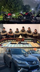 POLÍCIA APREENDE CARRO DE LUXO CLONADO, MOTOS, BEBIDAS, ARMAS, DINHEIRO E PRENDE SUSPEITOS