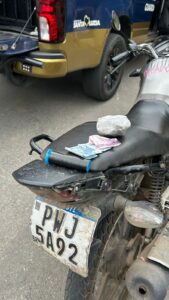 A GCM de Santa Luzia, em patrulhamento ostensivo, nesse domingo (23/11), se deparou com uma moto suspeita que empregou fuga. A guarnição deu início à perseguição, onde o suspeito foi abordado. Com ele, foi apreendida quantidade considerável de entorpecente. Ainda de acordo com a GCM, o homem tem várias passagens, inclusive por tráfico de drogas, e já é conhecido no meio policial.