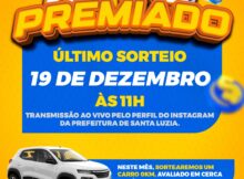 A Prefeitura de Santa Luzia realiza nesta sexta-feira (19/12), às 11h, o último sorteio do programa IPTU Premiado. O evento será transmitido ao vivo pelo perfil oficial da